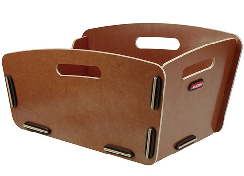 Praktisk, kjempestilig og solid trekasse for fastmontering på bagasjebrett.