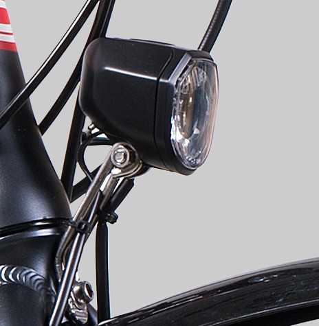 Diodelykt på 15 lux. Lagrer strøm fra dynamoen slik at det fortsetter å lyse i noen minutter hvis man står stille, for eksempel i et kryss.
