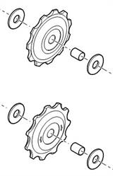 Sett med begge trinsehjulene samt hylse og distanseskive for Hallstrom Coffee, Coffee Basic og andre hybrid-, terreng- og elsykler med 9 eller 10 tannhjul bak.